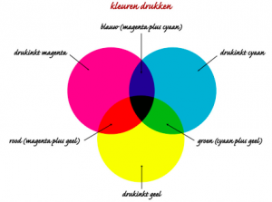 Bij drukkleuren: cyaan, magenta en (citroen) geel.(CMYK)
